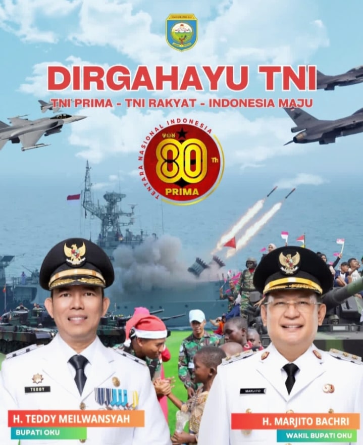 Bupati OKU H Teddy Meilwansyah menyampaikan ucapan selamat HUT TNI ke 80 tahun 2025, berharap TNI semakin kokoh, tangguh, modern dan tetap bersama rakyat dan pemerintah dalam mengawal pembangunan.