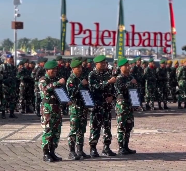 Brigjen TNI Iwan Ma’ruf Zainudin SE, selaku Kasdam II/Sriwijaya yang membacakan amanat tertulis Panglima TNI menyampaikan tema peringatan HUT TNI ke 80 tahun 2025, “TNI Prima, TNI Rakyat, Indonesia Maju” mencerminkan semangat profesionalisme, responsivitas, integritas, modernitas dan adaptasi TNI dalam mengahadapi tantangan zaman.