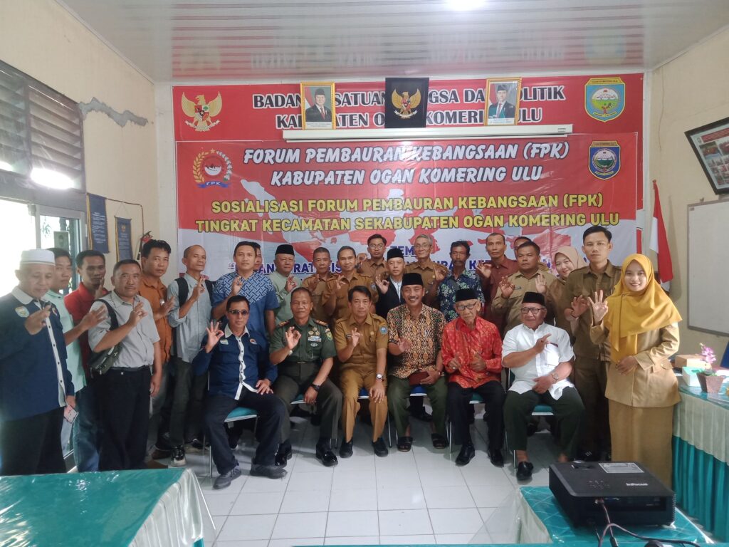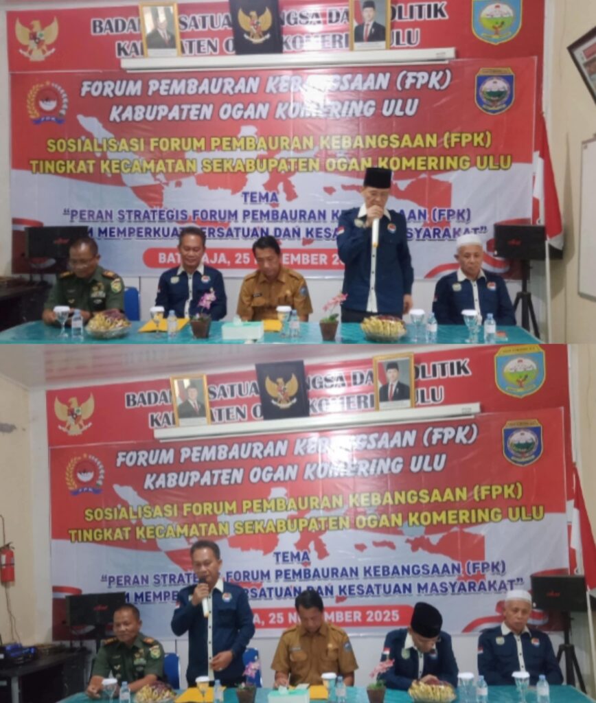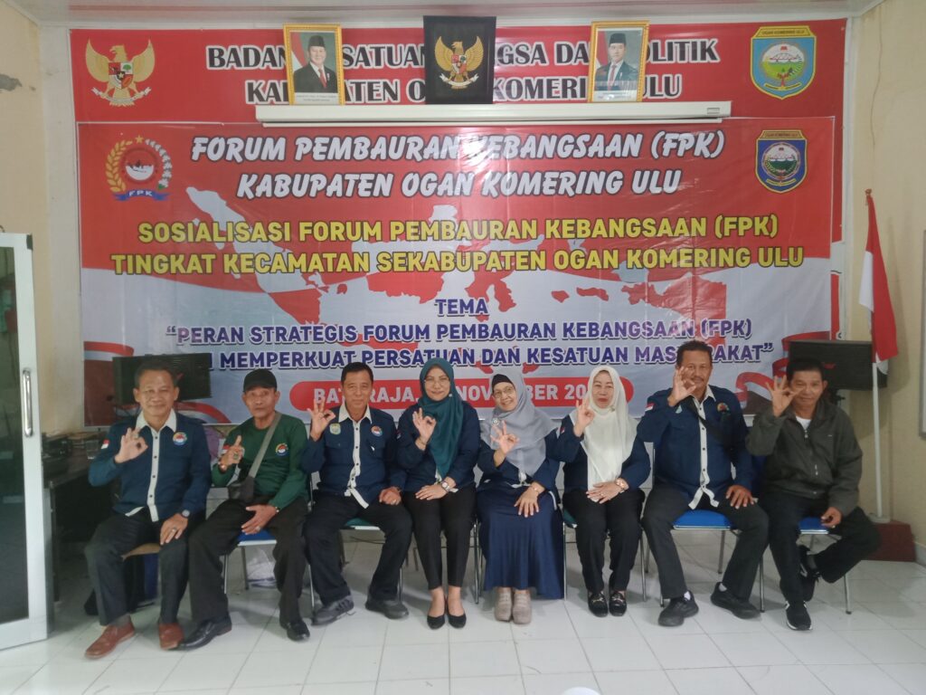 Baturaja – Badan Kesatuan Bangsa dan Politik (Kesbangpol) OKU bersama Forum Pembauran Kebangsaan (FPK) OKU melaksanakan kegiatan Sosialisasi FPK Tingkat Kecamatan Se-Kabupaten OKU, bertempat di Aula Kantor Kesbangpol OKU. Selasa (25/11/2025).